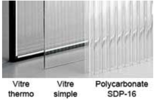 Le vitrage est étanche à l’eau grâce à du caoutchouc mousse à cellules fermées et retenu à l’aide de moulures à agrafes en vinyle rigide.