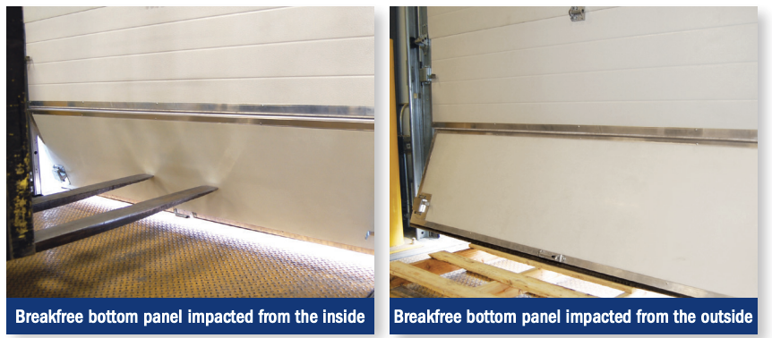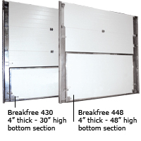The Breakfree 400 door is a cold storage impactable door that offers the high insulation value of a 4″ thick (R-32) polyurethane door and the ability to break away upon impact.